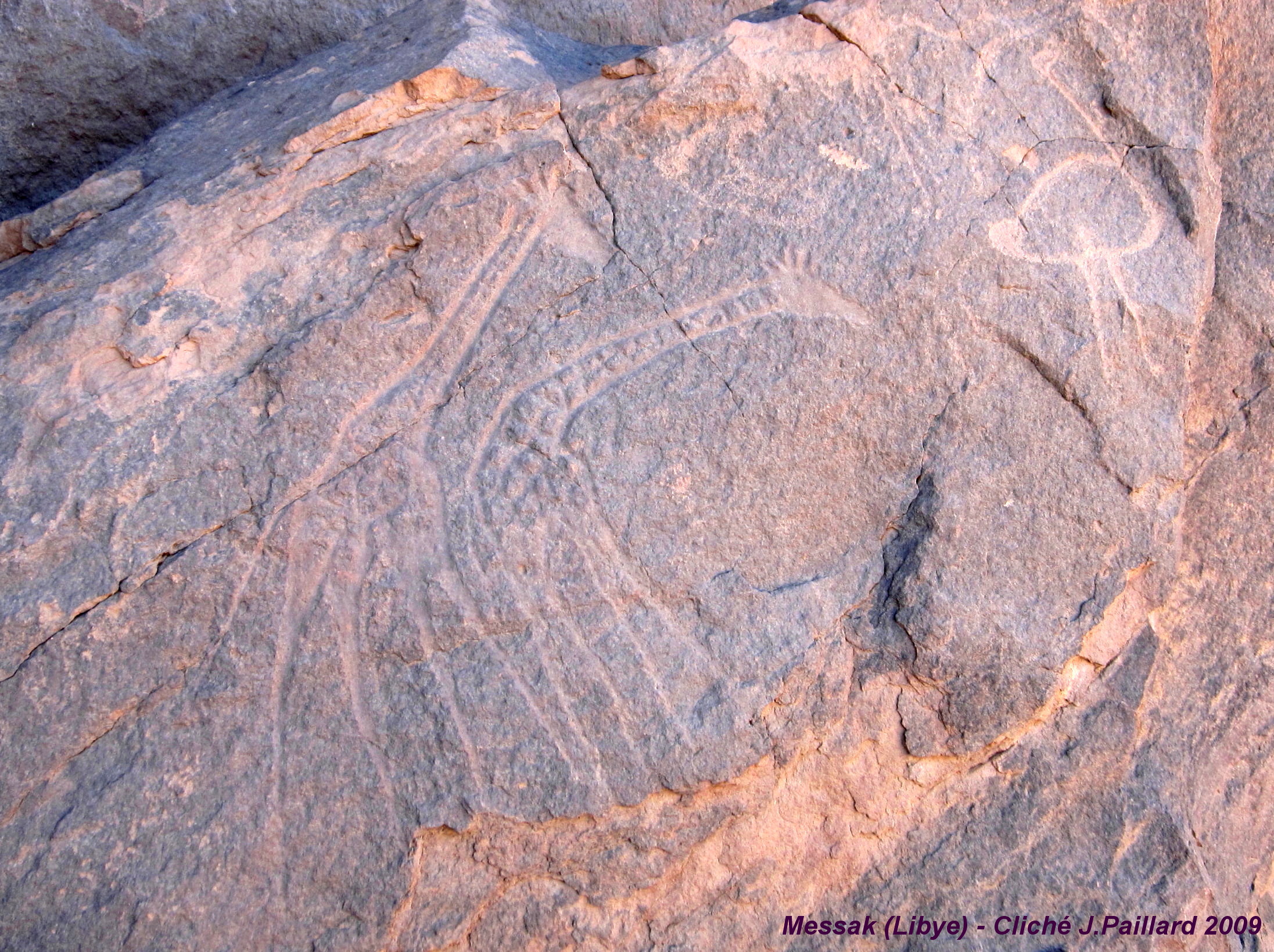 | « Gravures de la région du Messak dans le Sahara central » (photo J.Paillard). |