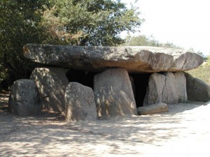 | Dolmen de la Frébouchère, de type angevin (Le Bernard – 85) Sadalle de couverture pèse 80 tonnes. |