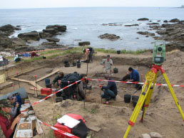 Une autre particularité attire l’attention des chercheurs. Nous nous situons à la transition entre le mode de vie qui consiste à vivre de ce qu’offre la nature (chasse, cueillette, collecte et pêche) et de celui qui tend à maîtriser peu à peu l’environnement par le biais de l’élevage et de la production de céréales. La proximité de l’océan et l’approche de cette transition a-t-elle permis aux tous derniers chasseurs-cueilleurs de résider de façon prolongée près de nos côtes ? C’est ce qui sera présenté à la lumière des dernières fouilles de juin 2013 du site de Beg-er-Vil (Quiberon, Morbihan). »