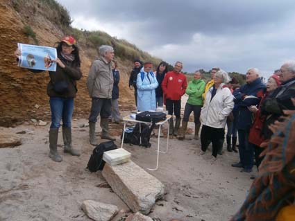 Cette collaboration aboutira à la parution de deux articles dans nos feuillets S.N.P. de 2009 et 2018, ce dernier relatant notre sortie sur le terrain, en juin 2016, ainsi que le suivi, par Sylvie Pavageau, de l’érosion et du collectage de portions d’amas tombées de la falaise qu’elle effectuera régulièrement. Échantillons sur lesquels l’équipe de notre atelier du samedi réalisera une étude statistique sous la direction de Catherine Dupont.