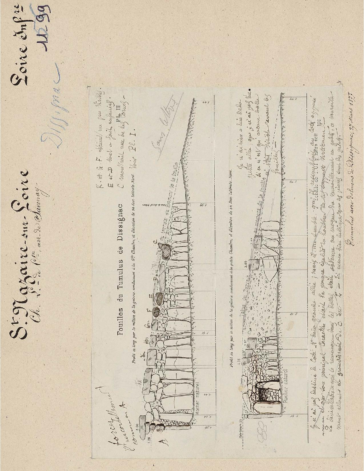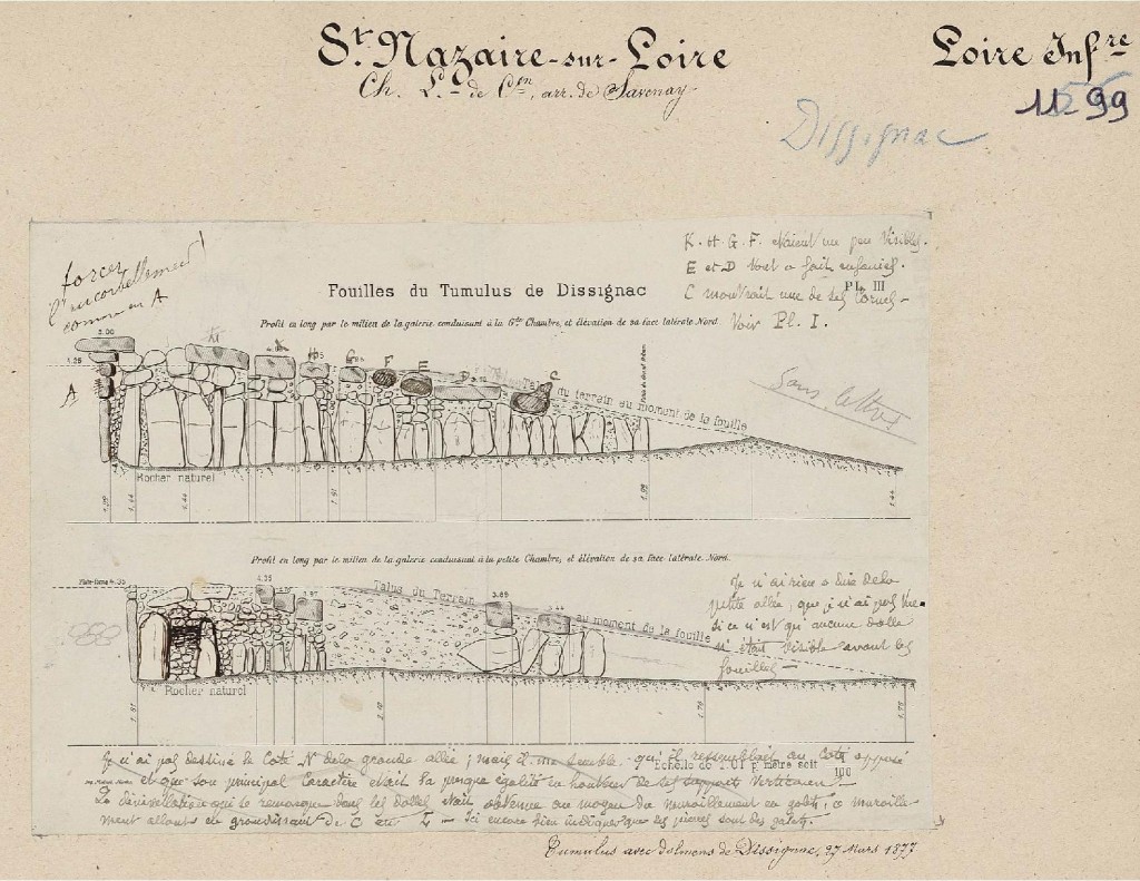 1877_Tumulus de Dissignac avant Fouilles: Coupes en élévation – KERVILER: