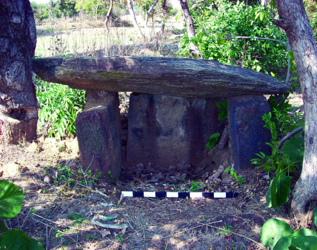 . Les chambres funéraires (« dolmens ») aux plans circulaires, quadrangulaires, polygonaux, avec des cellules multiples… Elles peuvent être construites avec des grosses pierres, entièrement ou partiellement et souvent (mais pas toujours) recouvertes avec un tumulus de terre (tertre) ou de pierres (cairns) qui peut être façadé et prendre une forme circulaire, rectangulaire, trapézoïdale… Le tumulus peut être disproportionné par rapport à l’emprise de la chambre funéraire. L’accès à la chambre funéraire peut se faire par un couloir et/ou par déplacement d’un bloc. Le contour peut être bouché par un muret voire un bouchon. Dans le cas où le tumulus existe, la chambre n’est pas visible.