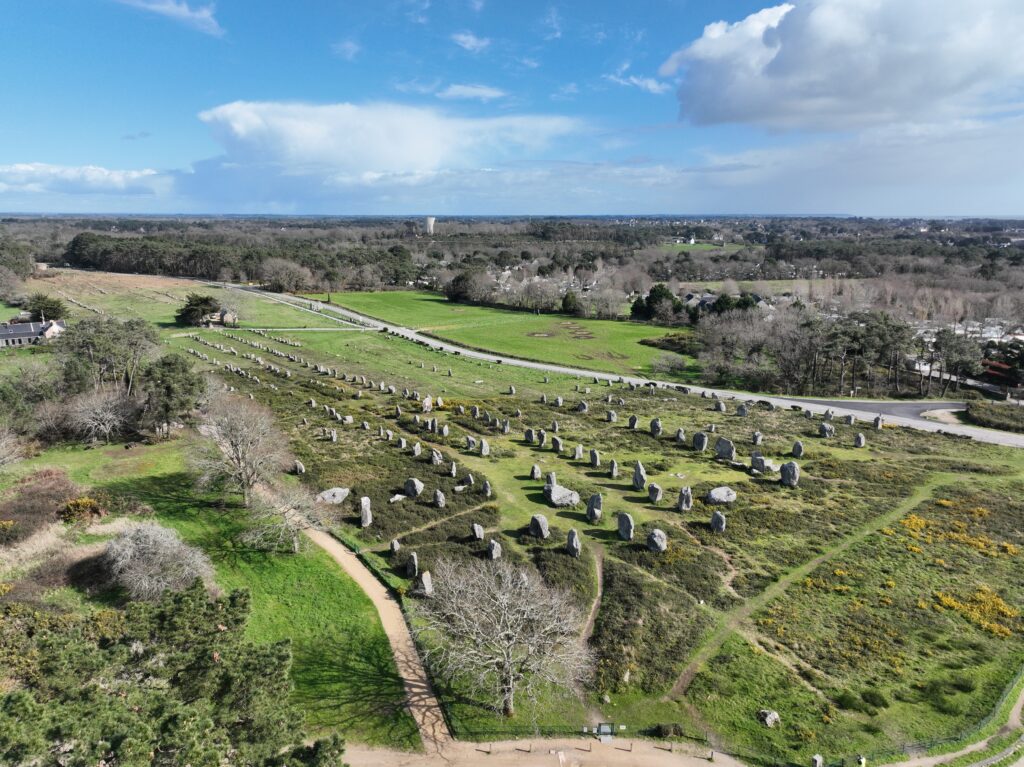 Les architectures sont inscrites dans un paysage selon des règles bien précises pour la communauté néolithique. Mais le paysage a énormément évolué au cours des 5 à 7 millénaires qui nous séparent d’eux, et les logiques ont été perdues. Mais là encore, les technologies actuelles permettent d’acquérir de grandes quantités d’information qui, une fois analysées, permettent de mieux comprendre les logiques sous-jacentes. Le site ultra touristique des alignements de Carnac :