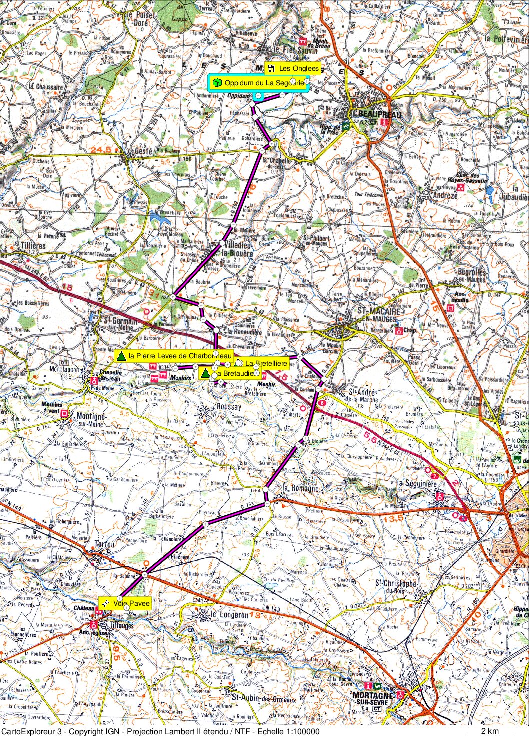 . Après midi : Visite de menhirs dans le secteur de la rivière Moine (Bretellière, Bretaudière et Charbonneau) présentation par Mr Yves NAUD des gravures de la Bretellière, puis visite d’une section pavée de voie antique entre Torfou et Tiffauges.