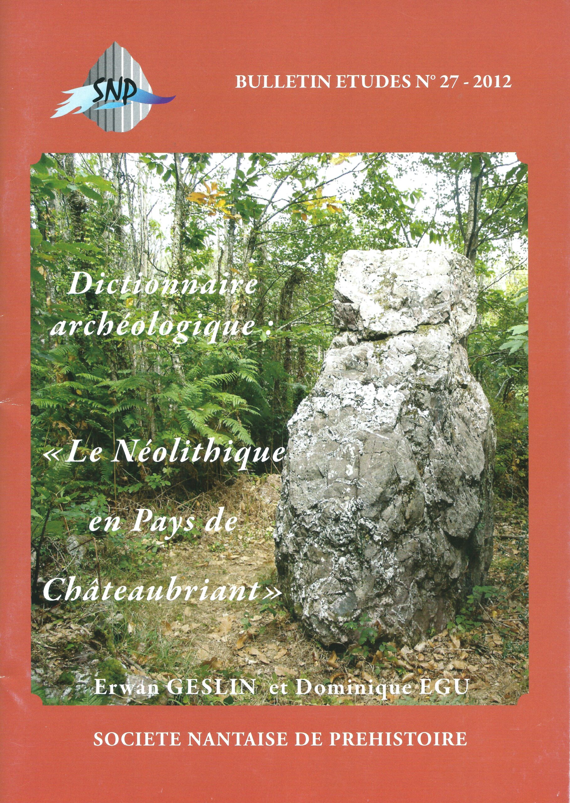 27 – ETUDES 2012 – Prix : 10 € ![]() « Dictionnaire archéologique : Le Néolithique en Pays de Châteaubriant (44) ». Par Erwan GESLIN et Dominique ÉGU |