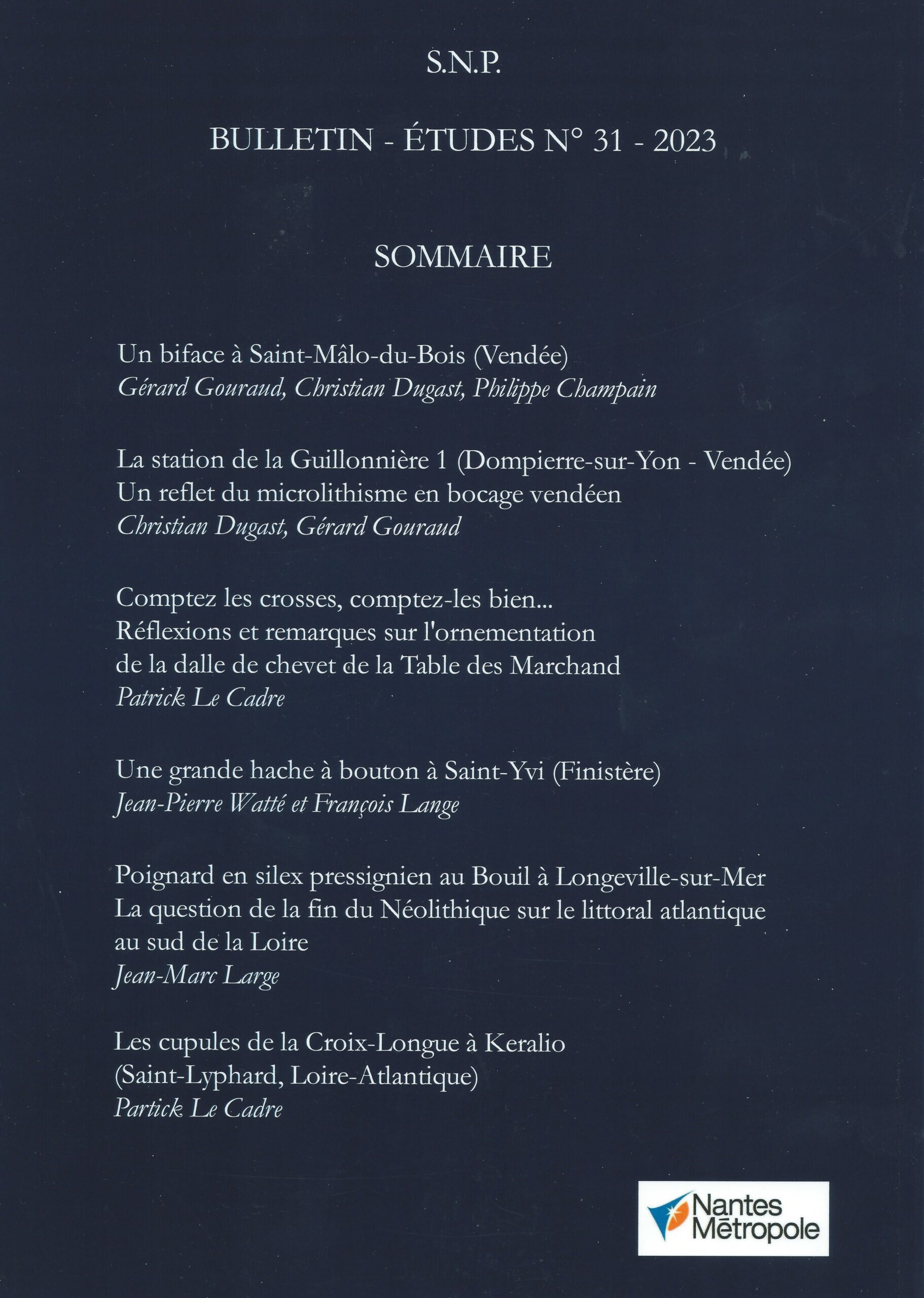 - Par Jean-Yves GALLAIS avec la collaboration de Philippe FORRÉ : « Pièces à dos tardiglaciaires en presqu’île Guérandaise« .